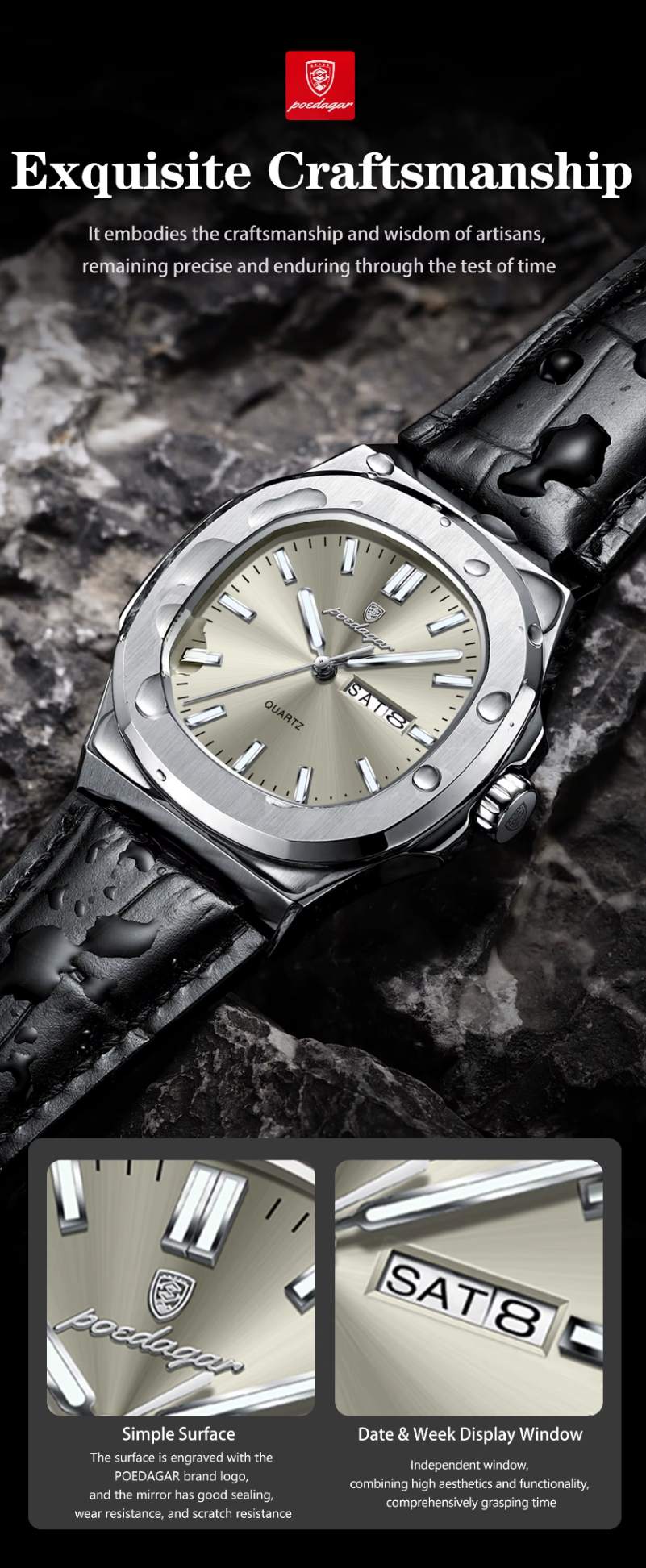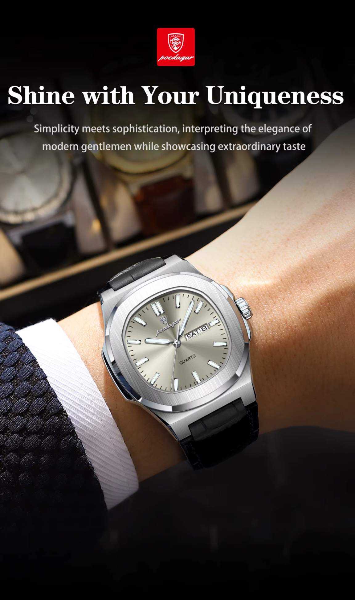 Não perca a oportunidade de adquirir este relógio de alta qualidade. Junte-se aos homens que valorizam estilo, qualidade e funcionalidade em um único produto. Adquira já o seu relógio Poedagar luxuoso, luminoso e à prova d'água e eleve o seu visual a um novo patamar! Aproveite a entrega rápida e garantia de satisfação. Seja único, seja Poedagar.