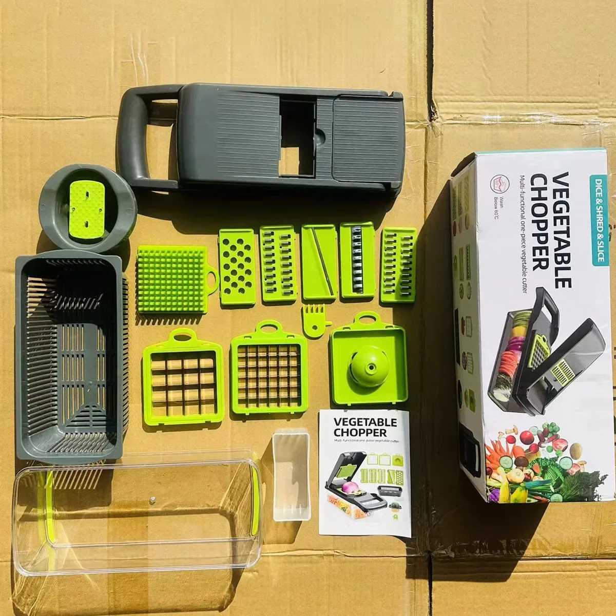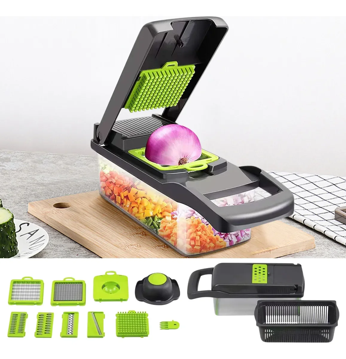 O Cortador de Legumes 14 em 1 é a ferramenta ideal para quem deseja praticidade, rapidez e precisão no preparo de alimentos. Equipado com 8 lâminas de aço inoxidável e design ergonômico, ele permite fatiar, picar, cortar em cubos e muito mais, transformando sua rotina na cozinha em uma experiência prática e eficiente.