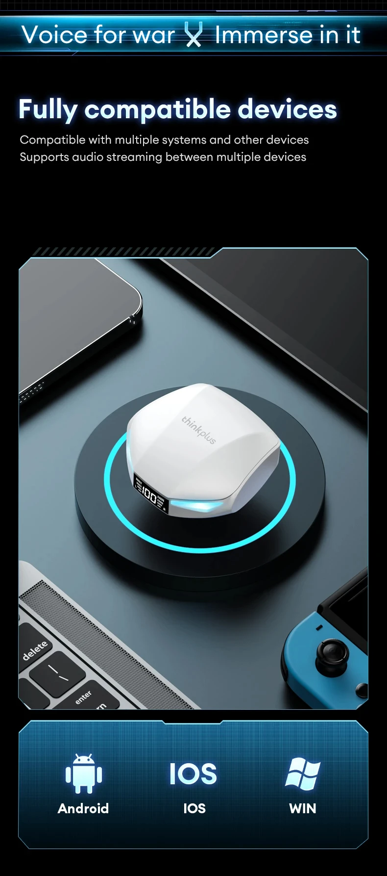 5. ?Compatibilidade de dispositivos inteligentes para conexão conveniente?:Apresentando chip Bluetooth 5.4 para transmissão estável, é compatível com vários dispositivos, oferecendo bateria de longa duração e liberdade de ansiedade da bateria.